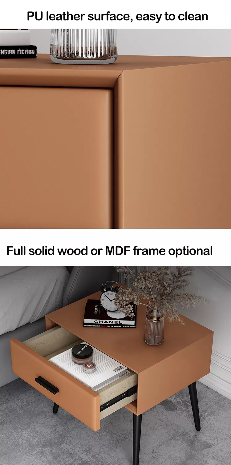 Introducing our PU Leather 1-Drawer Nightstand with Gold Metal Legs — a sophisticated blend of modern aesthetics and functional design. Manufactured by a professional furniture factory with years of export experience, this bedside table is crafted for homeowners, interior designers, hoteliers, and e-commerce businesses seeking premium quality at factory-direct prices.