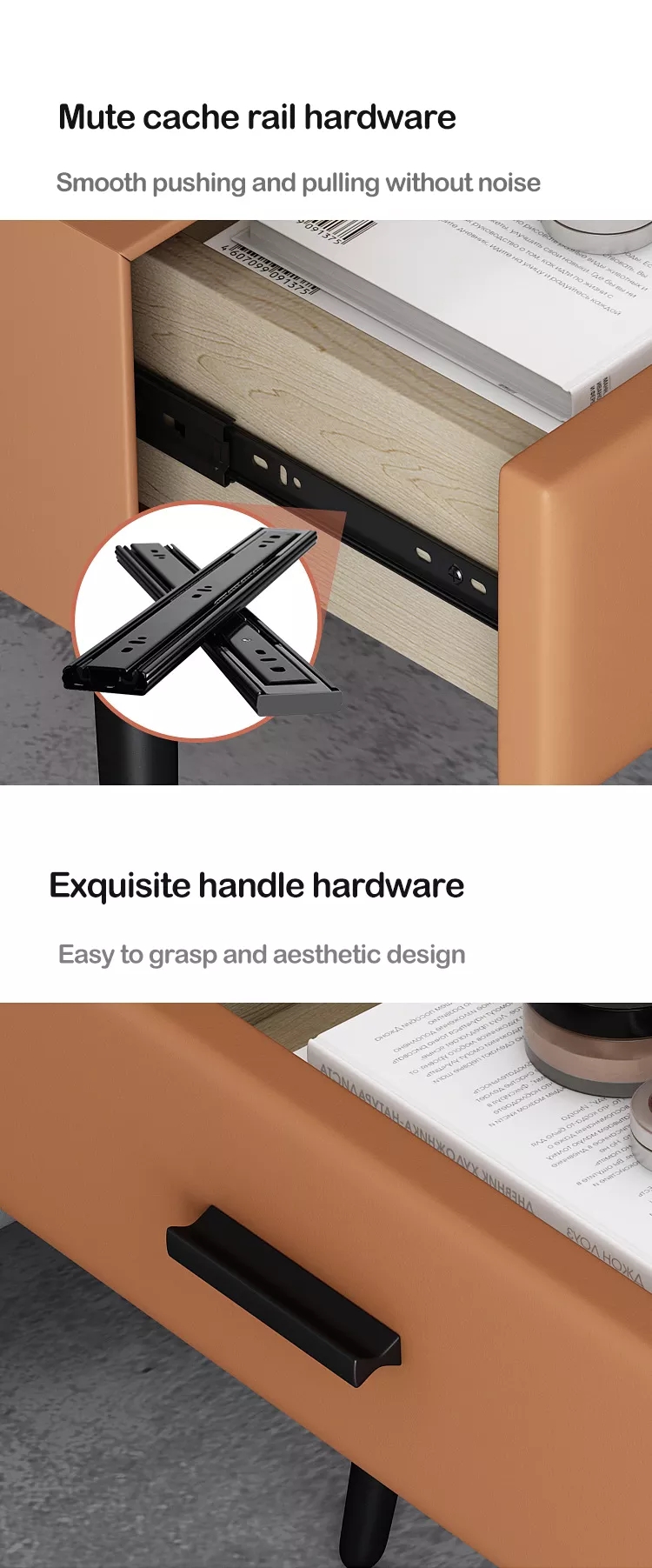 Two Spacious Drawers:Ample storage for bedside essentials — smooth metal slide mechanism